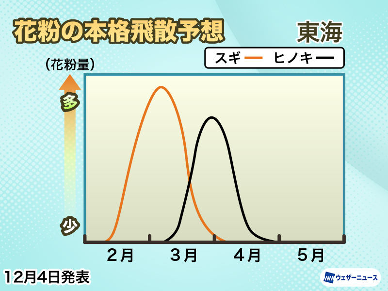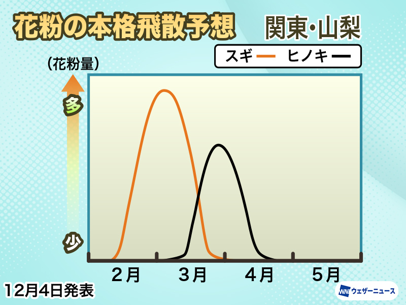 なお、雄花調査において東京都・千葉県・神奈川県・山梨県では雄花の量が当初の予想を上回り、群馬県では予想を下回る傾向があったため、飛散量を前回発表より更新しています。