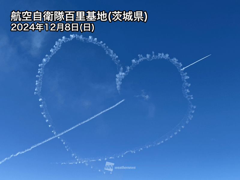ブルーインパルスが冬晴れの空にハートを描く 茨城県百里基地