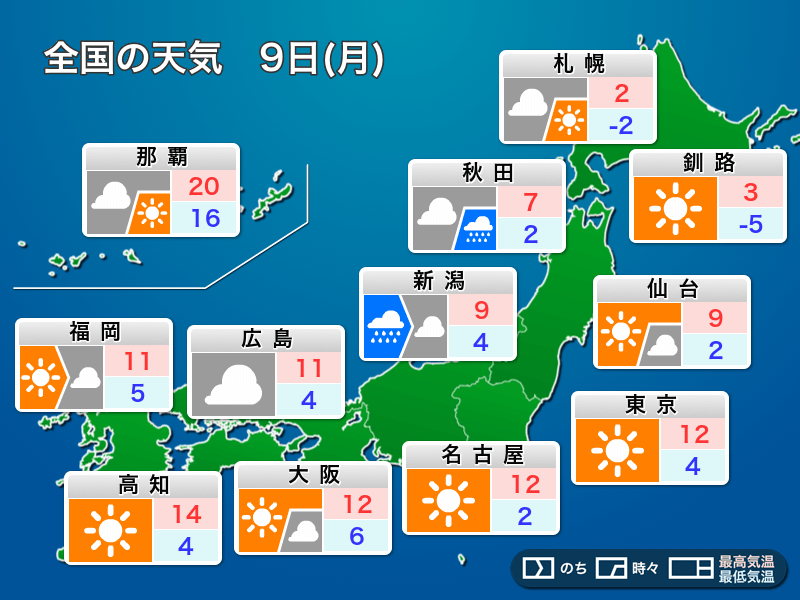 明日12月9日(月)の天気予報…