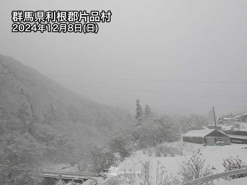今日8日(日)は平地で雪を降らせる目安の上空1,500mで−6℃の寒気は東北南部から北陸付近まで南下。標高の高い利根郡では雪が降り続き、大雪となりました。