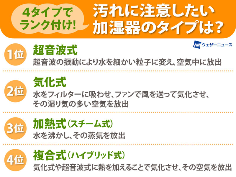 電気代が安いことで人気のタイプですが、比較的汚れに注意は必要だといいます。「気化式は、タンクの水をフィルターに吸わせ、ファンで風を送って気化させ、その湿り気の多い空気を放出します。このためフィルターに雑菌が生えやすく、こまめなお手入れが必要です」(アイリスオーヤマ)