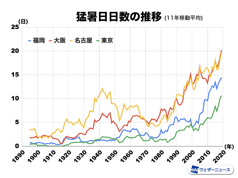そのほか、福岡市や大阪市、名古屋市なども、年間猛暑日日数は過去最多になりました。