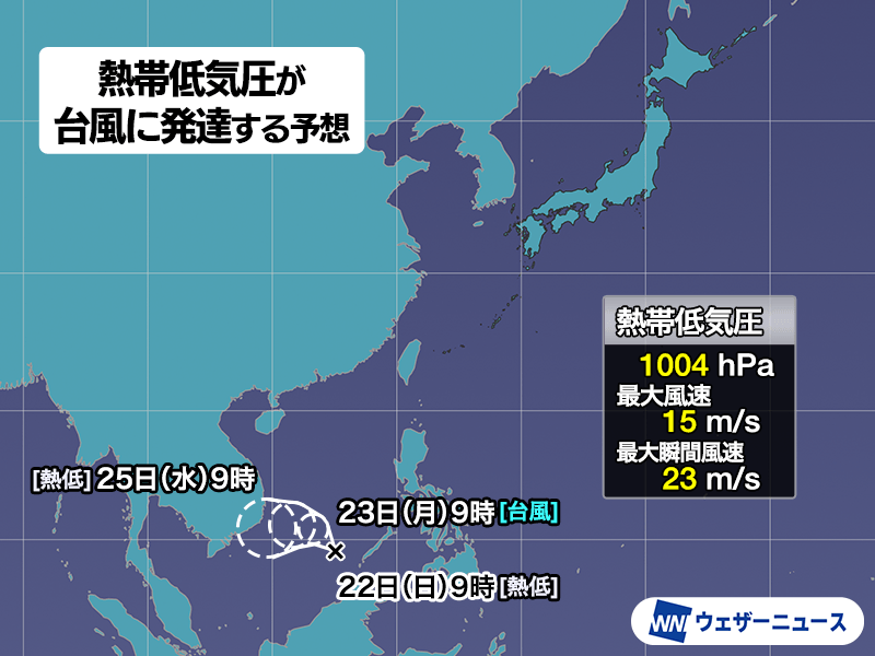 熱帯低気圧が台風に発達する予想 発生すると1か月ぶりで“台風26号”に