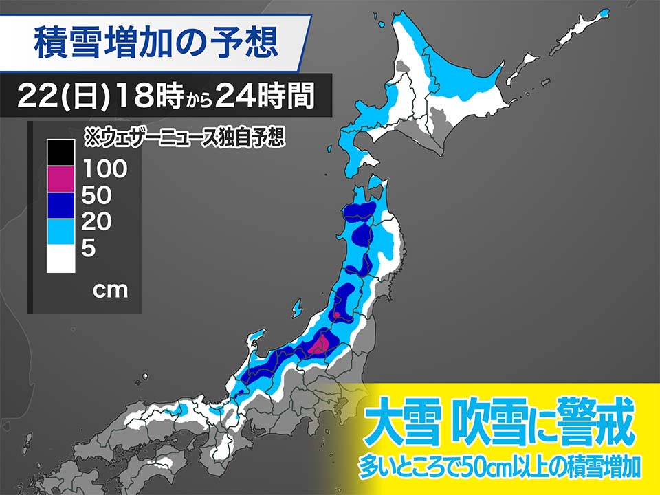 東北・北陸は明日にかけ大雪に警戒 多いところで50cm以上の積雪増も