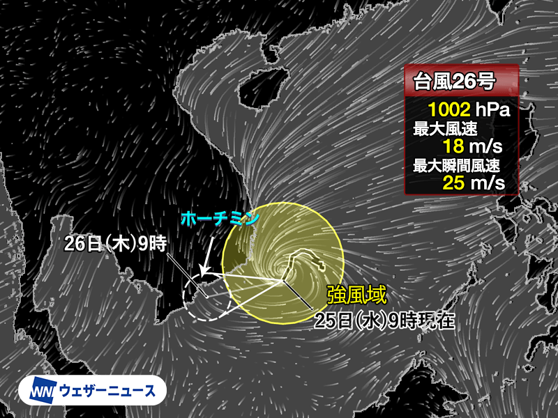 台風26号はベトナムに接近 南部を中心に大雨に注意