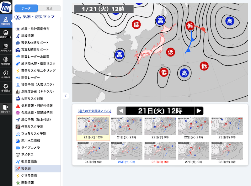 » 天気図を確認する