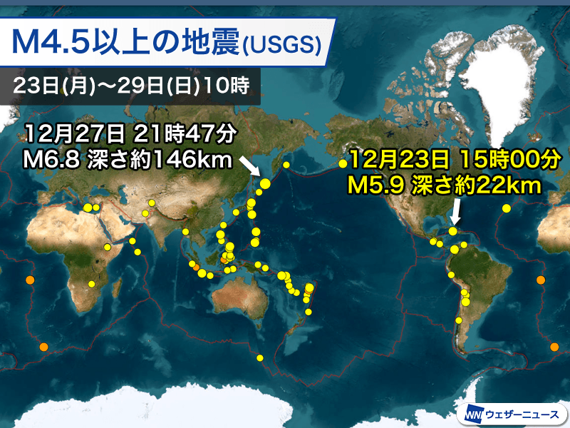※日本国内の震源・震度の情報は特に記載が無ければ気象庁より。海外の震源情報は特に記載が無ければアメリカ地質調査所(USGS)より。発表機関により震源情報に差が生じることがあります。