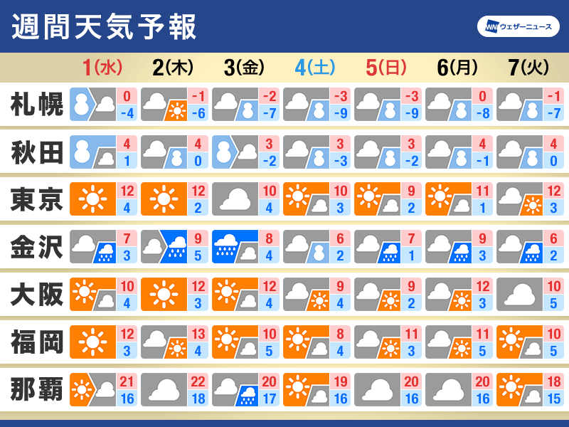 週間天気・年末年始の天気…
