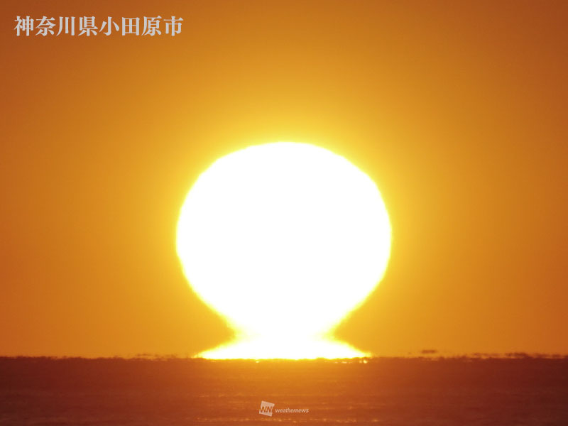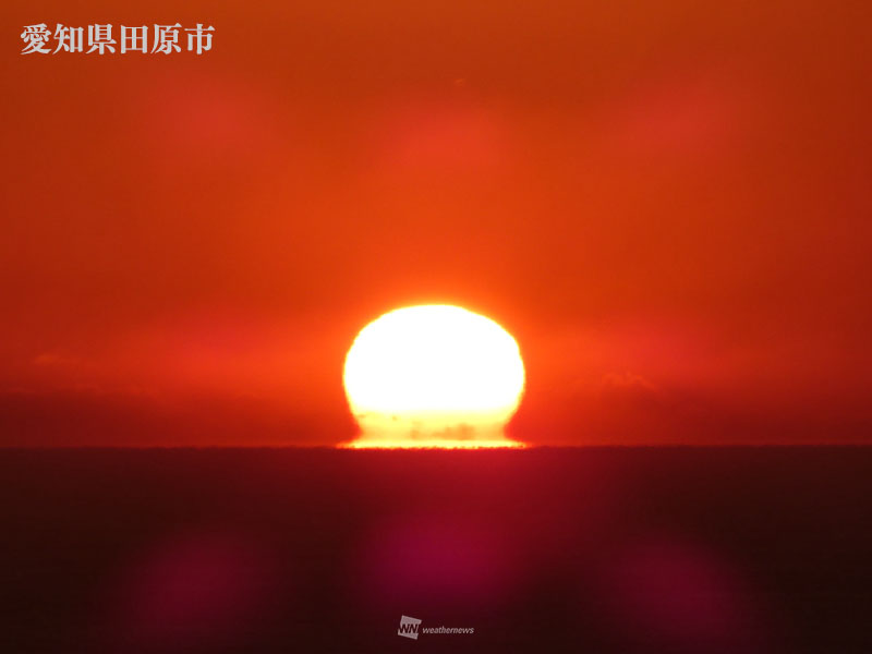 縁起良く「だるま初日の出」登場 蜃気楼の一種