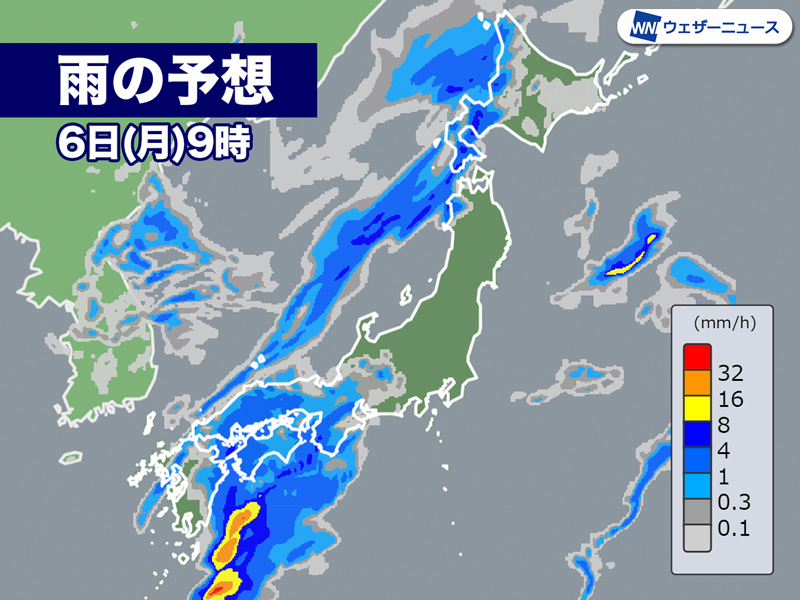 仕事始めの方が多い明日6日(月)は南岸や日本海の低気圧や前線が日本付近を横断し、久しぶりに広範囲で西から天気が崩れます。東日本や西日本は強雨、北日本は湿った雪や雨の強まりに注意が必要です。積雪しているエリアでは雪崩や落雪、足元の悪化に警戒してください。