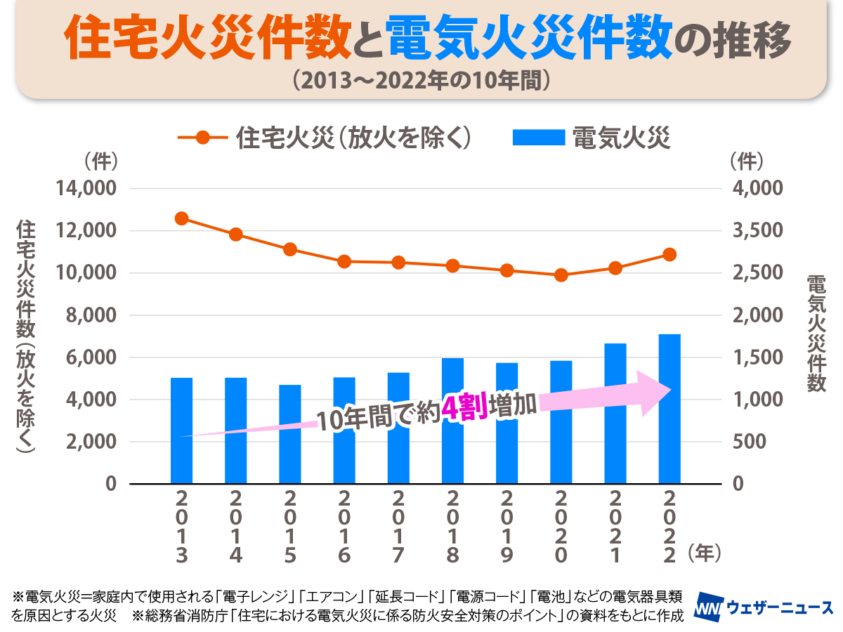 電気火災が増えている