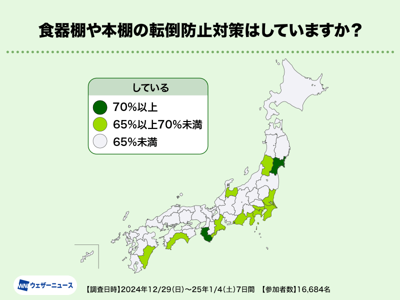 住宅の災害対策調査 約6割が家具の転倒防止を実施 半数以上が耐震性に不安