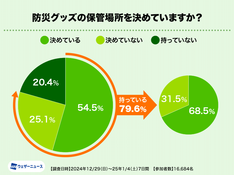 防災グッズの保管場所:持っている人の約7割は場所を決めている