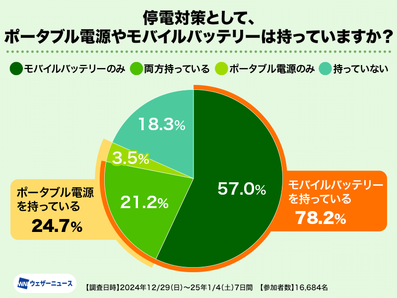ウェザーニュースではアプリ利用者を対象に、災害時の意識調査を継続的に行っています。この年末年始には電源確保に関するアンケート調査を実施しました。
