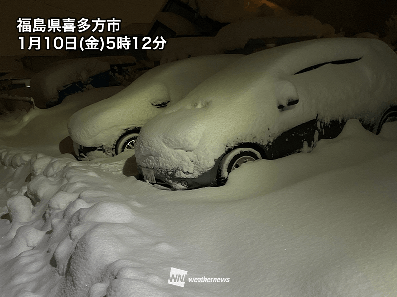 4時現在までの24時間降雪量は、福島県の西会津町で57cm、山形県櫛引で52cm、山形県米沢市で50cm、新潟県魚津川で49cmです。山間部では積雪が150cmを超えたところもあります。