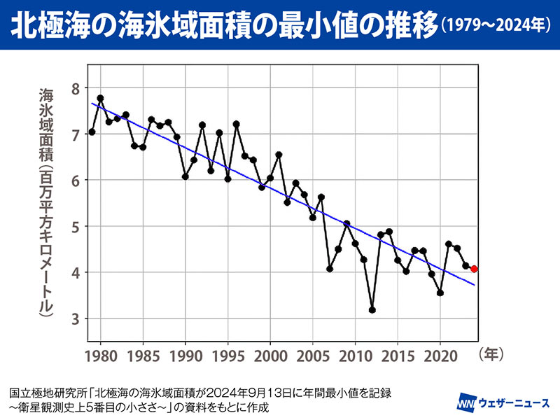 2024年9月13日、北極海の海氷域面積が年間最小値を記録しました。