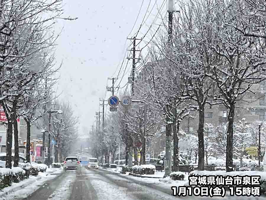 昨日から今日にかけては西日本や東海の平野部でも雪が降り、鹿児島や宮崎、三重県の津では初雪が観測されました。名古屋や京都、福岡、長崎などでは積雪が観測されています。昨日今季初めての積雪を観測した仙台も今日再び雪が強まり、8cmの積雪が観測されています。