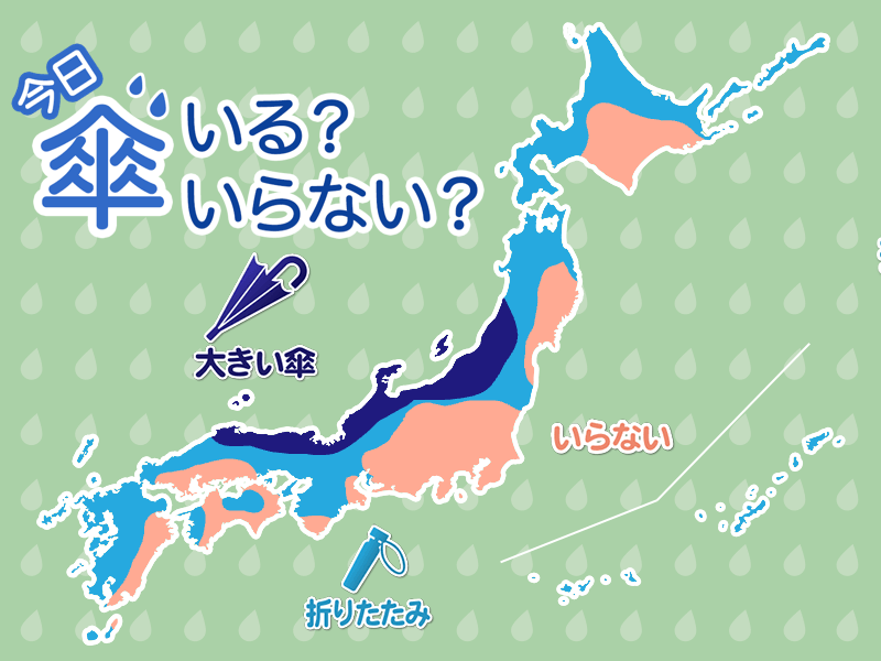 また近畿も朝にかけて雪の降る可能性あり。沖縄は雲が多く弱いにわか雨にご注意ください。各地、お出かけには折りたたみ傘があると安心です。