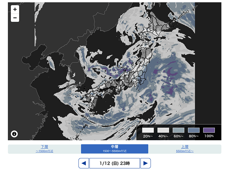 ウェザーニュース雲量予想マップ
