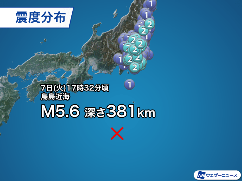 国内:鳥島近海の地震で関東から東北が揺れる