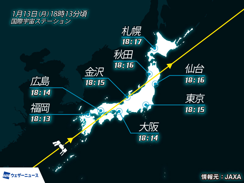 その他の東日本や西日本では晴れるところが多く、国際宇宙ステーションを観測できそうです。