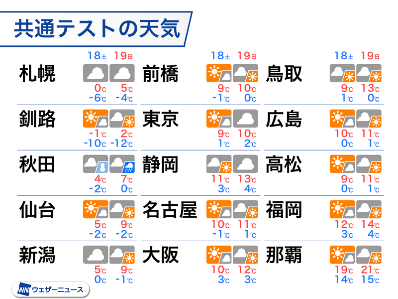 共通テスト初日までに大雪は峠越える 雨や雪のエリアは限定的