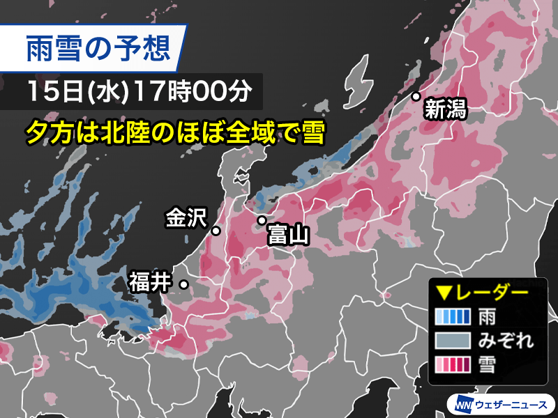 夕方は北陸のほぼ全域が雪に