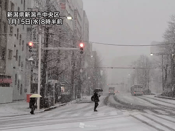 新潟市内は雪に変わり積雪急増 そのほかの北陸市街地も今夜は雪