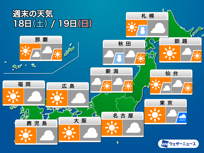 まだ寒気の影響が残るため、北日本の日本海側の一部で雪や雨が降るものの、広範囲で強まることはない予想です。前日17日(金)は風雪の強まりや積雪の増加が予想されていて、交通機関にはこの影響が残る可能性はありますので、念のため少し時間に余裕を持って行動した方が良さそうです。