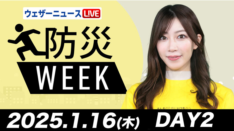 ウェザーニュースでは気象情報番組「ウェザーニュース LiVE」にて2025年1月15日(水)〜17日(金)にかけて「防災WEEK」を実施。阪神淡路大震災を教訓に地震災害への意識を高め、期間を通して最新の防災や減災について皆さんに参加してもらいながら一緒に学び、考えていきます。