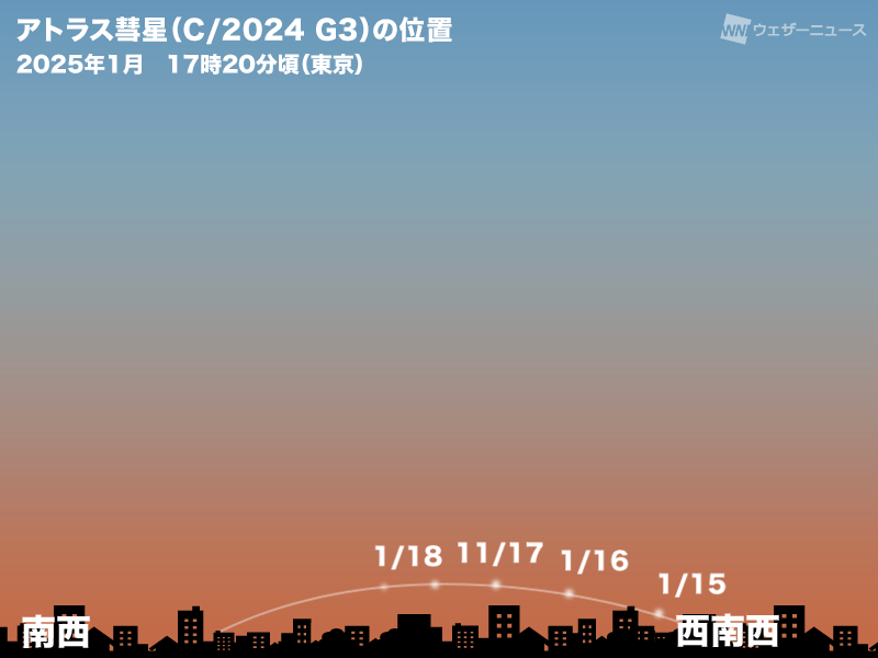 参考:アストロアーツ「2025年1月 アトラス彗星が0等前後」