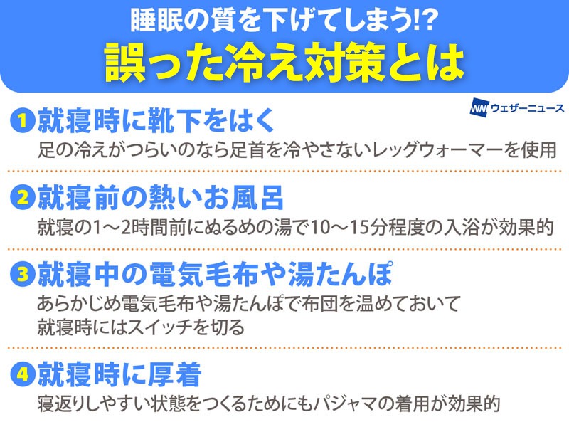 就寝前にやりがちな誤った冷え対策