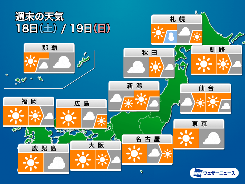 試験2日目の19日(日)は、初日に比べると北海道や東北北部で雪が降りやすくなるものの、1日目と同様に雪の影響は小さい予想です。