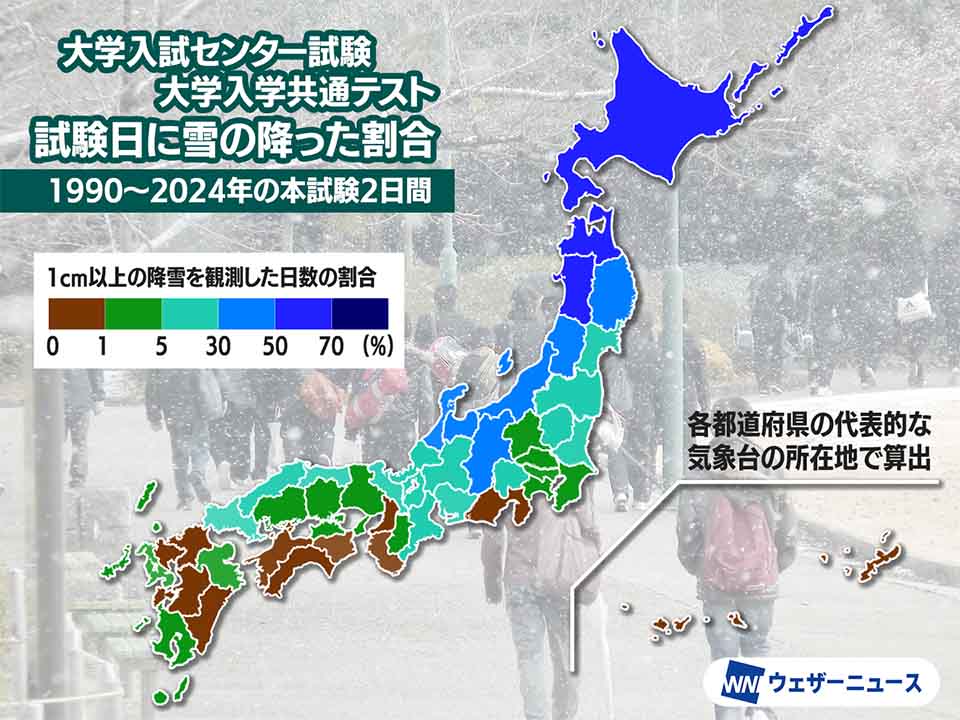 試験日の雪統計、札幌や青森は60%超 今年の共通テストは例年になく穏やか?