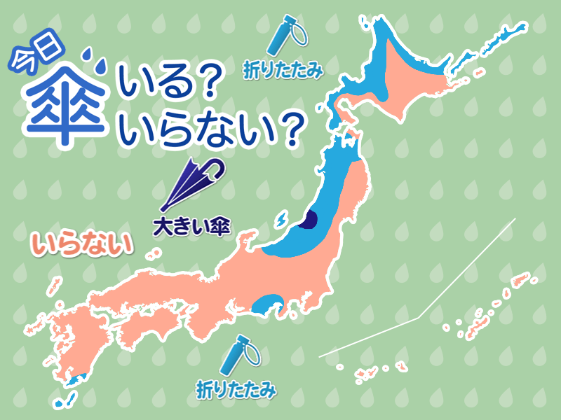 北日本日本海側や北海道オホーツク海側では午前中を中心に雪が降りやすい天気です。