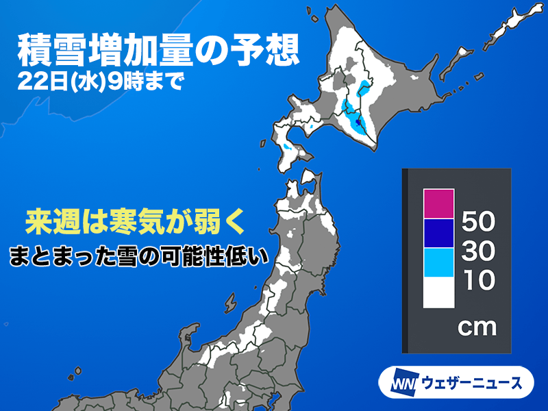 まとまった雪は降りにくい予想