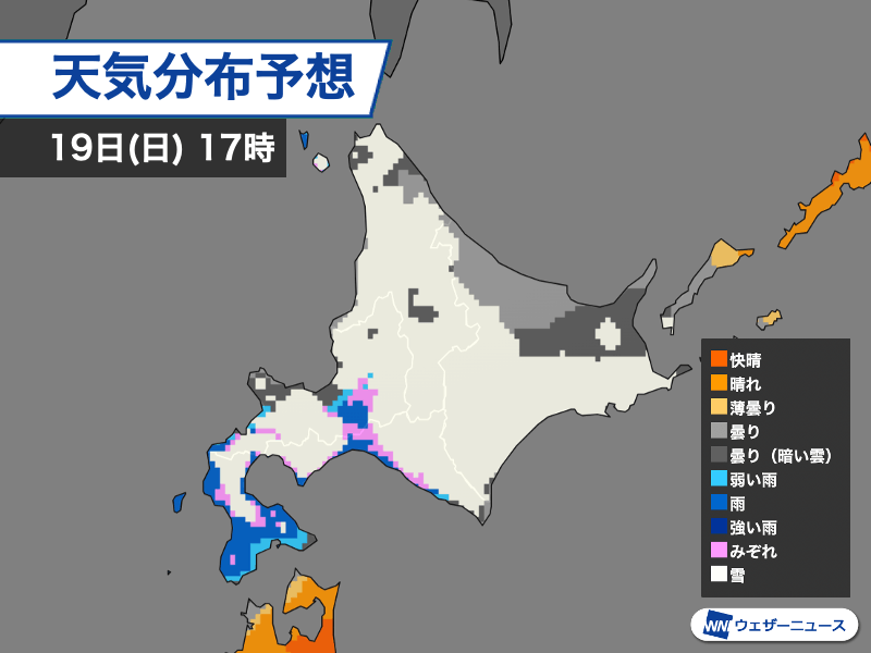 午後にかけて段々と雨や雪の範囲は拡大し、札幌市や釧路市など北海道の南の地域ほど雨具の出番があるとみています。