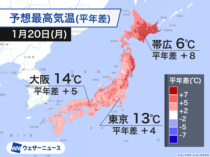 今日は“大寒”でも寒さ緩む 平年より気温が大幅に高く3月並に