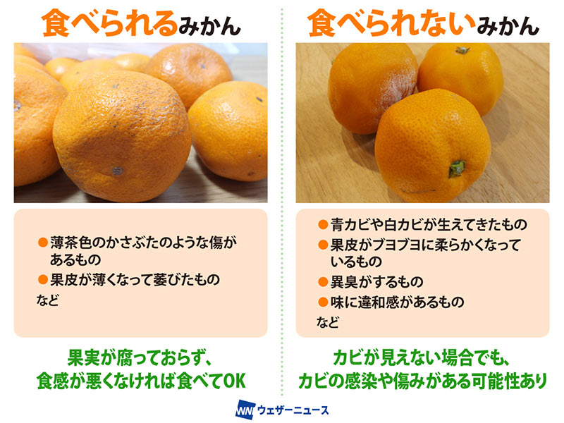 冬の貴重なビタミンCの補給源でもあるみかん。カビが生える前に早めに食べきって、風邪予防に役立てましょう。