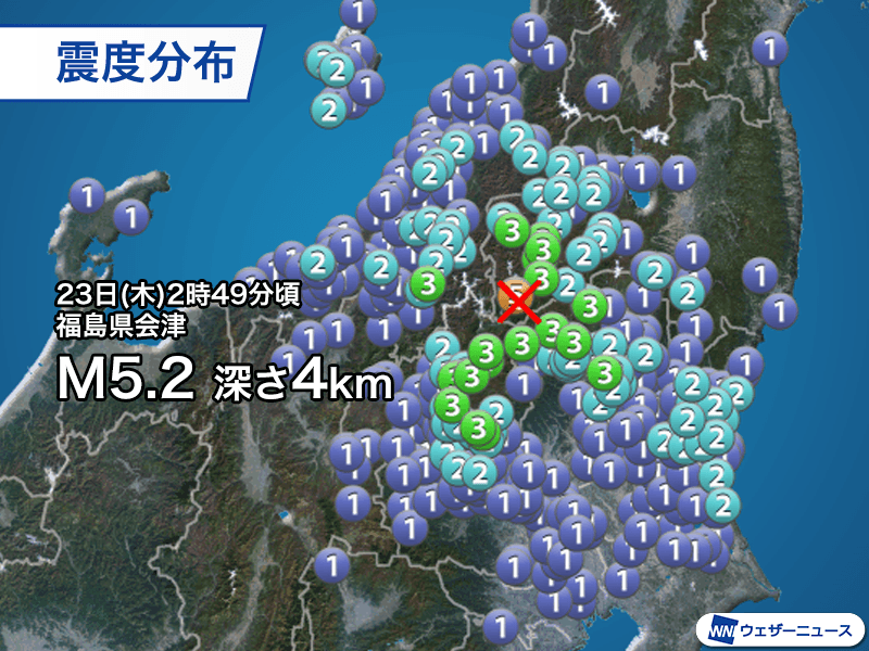 国内:福島県会津でM5.2 震源浅く強い揺れに