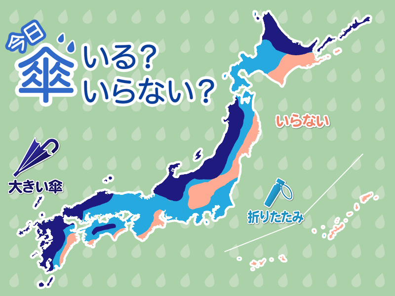 東海や関東は、朝のうちまで雨の降る所があるため傘があると良いですが、外出先への置き忘れに注意をしてください。
