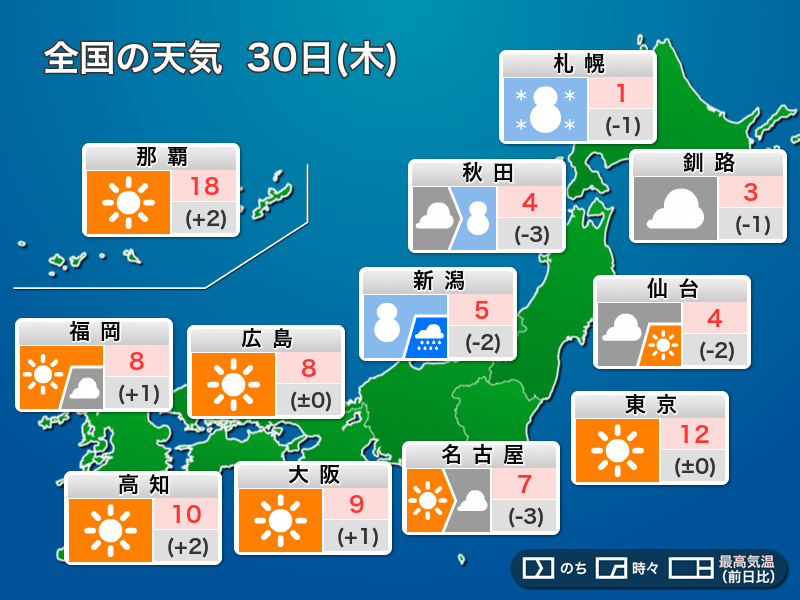 今日1月30日(木)の天気予報…