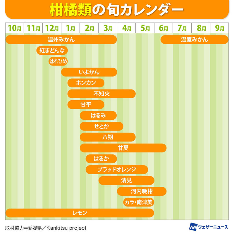 これから旬を迎える柑橘(かんきつ)類は? 柑橘類カレンダー