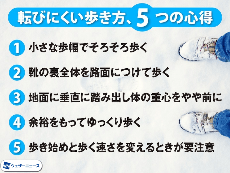 雪の日は転倒などのトラブルが起きがちです。今からできる準備を整えつつ、普段より余裕をもって行動し、あわてずに一歩一歩ゆっくり歩きましょう。