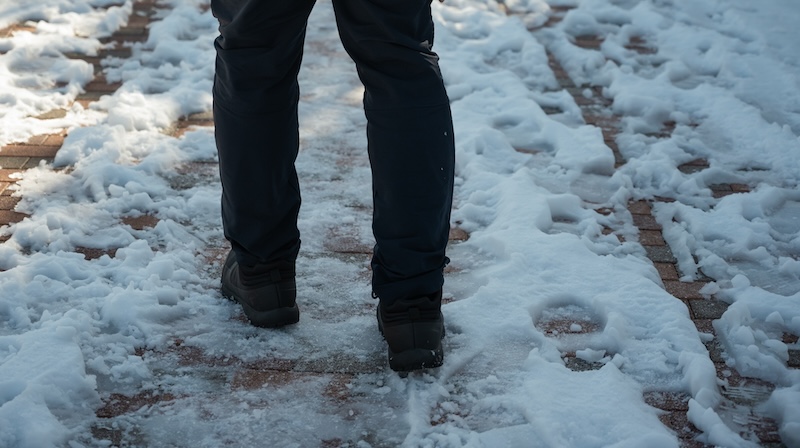 雪道にスニーカーや革靴、不安定なハイヒールは適しません。できれば「滑らない」「濡れない」「暖かい」という3つの機能を備えた冬靴を用意しておきましょう。滑りにくさは靴底がポイント。柔らかいゴム底で路面に対するグリップ力が強く、深いギザギザ模様の溝が付いているもの、固い氷や雪をとらえやすい、ピン・金具付きのものがオススメです。