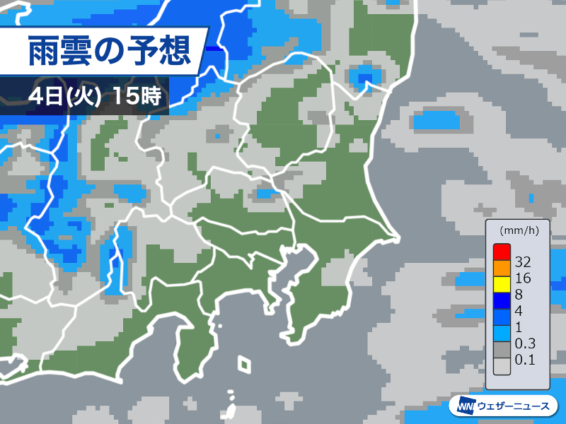 明日4日(火)の関東は朝から晴れるものの、午後は天気急変の可能性があります。局地的に雲が発達して雷や霰(あられ)を伴うおそれもありますので注意が必要です。