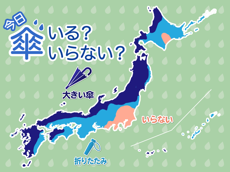 山陰の沿岸や九州では雨になるところもあり、大きい傘が必要です。