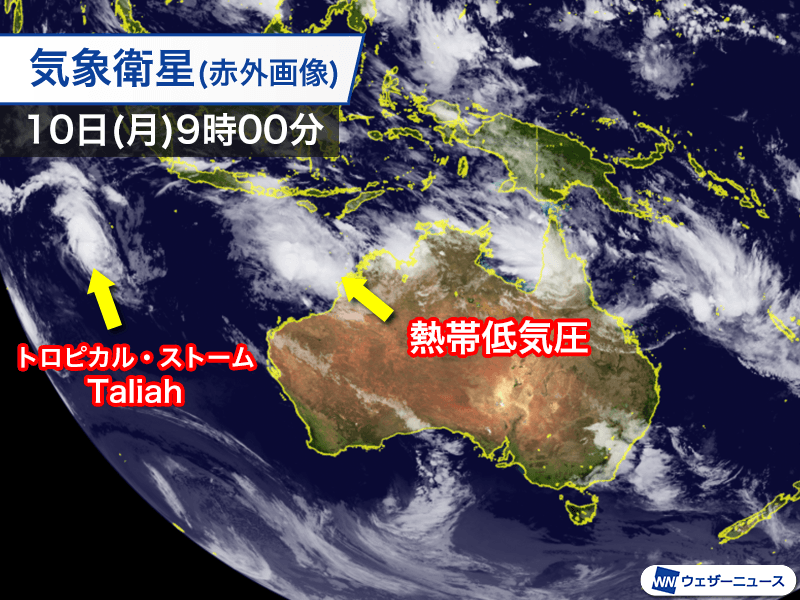 この時期のオーストラリア北部はモンスーンによって対流活動が活発になります。熱帯低気圧が発生しやすく、2月はじめに発生したものはトロピカル・ストームまで発達して、インド洋へと進みました。