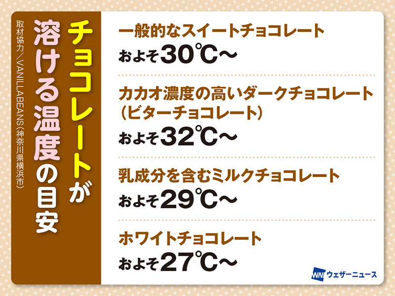 チョコレートが溶ける温度は? バレンタインの今日、心配な地域は…