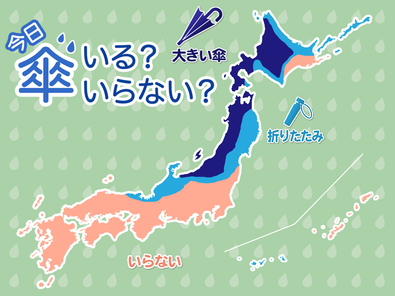 沖縄の先島諸島も雨の可能性があるため、外出の際には折りたたみ傘があると安心です。